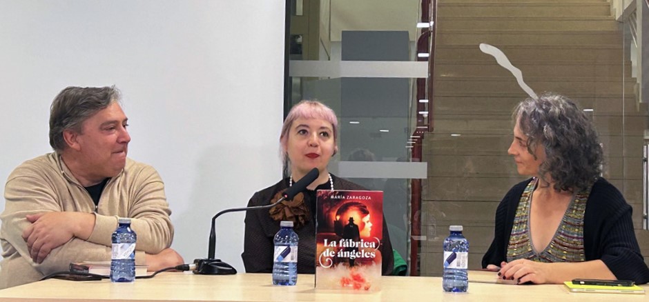 La Biblioteca Alonso Quijano de Campo de Criptana acogió la presentación de la última novela de la escritora María Zaragoza, La fábrica de ángeles. La autora estuvo acompañada por los concejales Rosana Fernández y Mariano Ucendo, y durante el acto compartió con los asistentes detalles sobre esta obra, la decimoquinta de su trayectoria literaria.