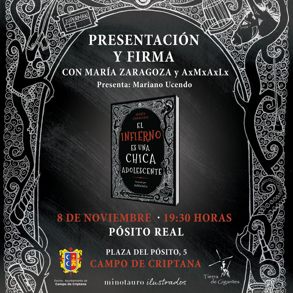 Tras la presentación, la autora, firmará ejemplares para toda aquella persona que asista a esta puesta de largo de ‘El infierno es una chica adolescente’.