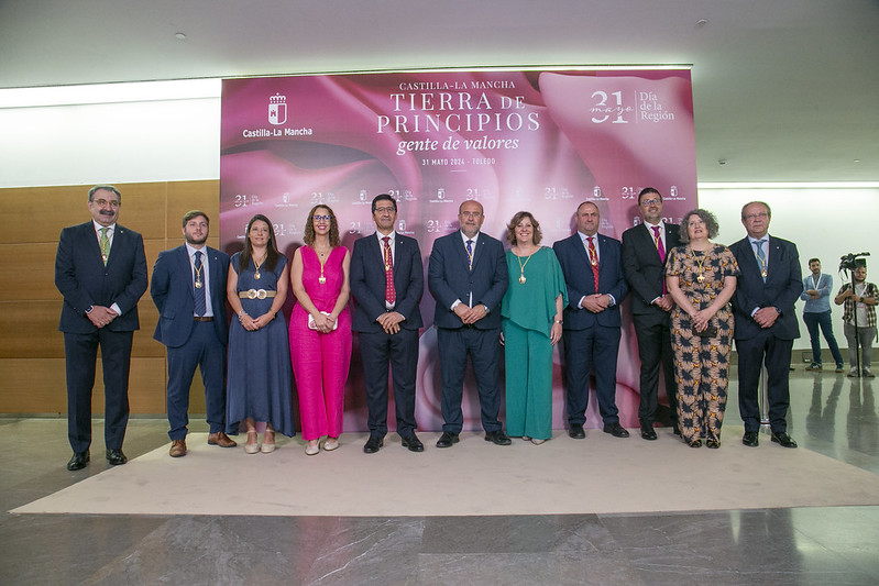 La presente edición se ha celebrado con el lema ‘Castilla-La Mancha: Tierra de principios, gente de valores’ y se han entregado tres Medallas de Oro, 13 nombramientos de Hijas e Hijos Predilectos, cinco distinciones a hijas e hijos adoptivos, 11 Placas de Reconocimiento al Mérito Regional, una Medalla Conmemorativa y otras seis Medallas Conmemorativas especiales con motivo de la designación de Castilla-La Mancha como Región Europea del Deporte.