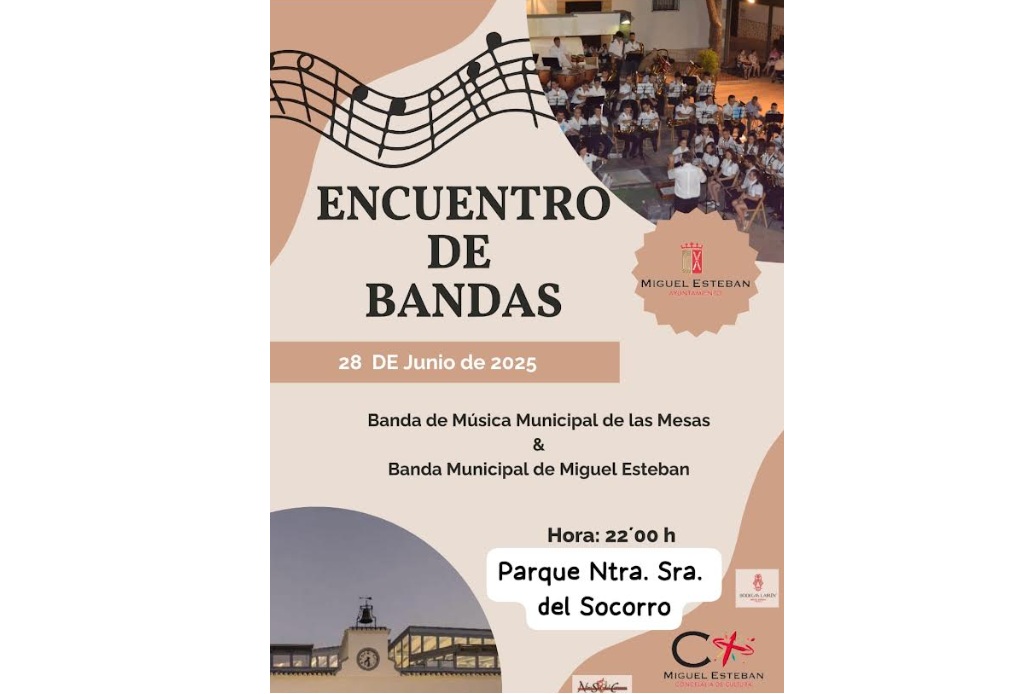 Miguel Esteban será escenario este próximo sábado, 28 de junio, de un encuentro de bandas de música que se celebrará en el Parque Nuestra Señora del Socorro a partir de las 22:00 horas.