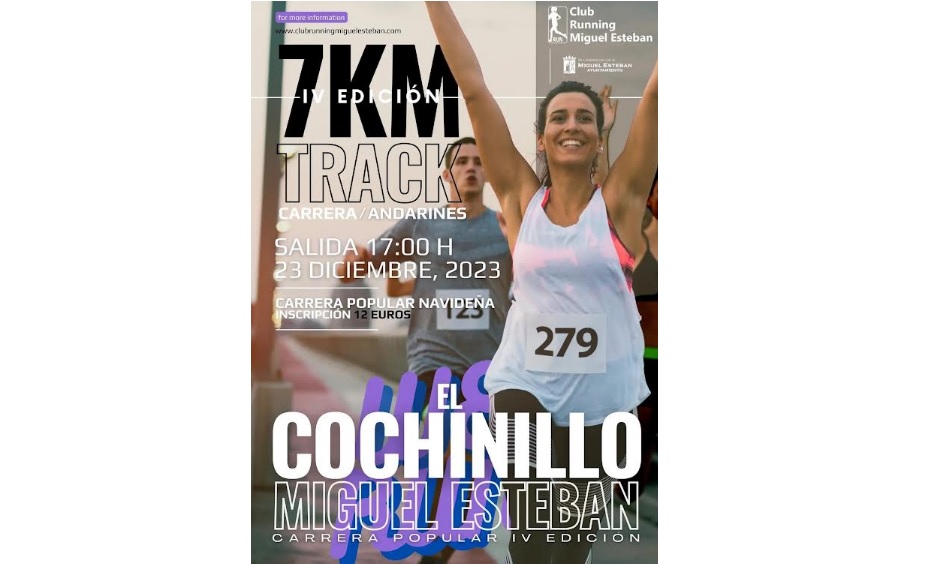 El Club Running de Miguel Esteban, en colaboración con el Ayuntamiento miguelete, ha organizado la cuarta edición de la carrera popular del cochinillo. La prueba, que se celebrará el próximo sábado 23 de diciembre con el pistoletazo de salida a las cinco de la tarde, plantea un recorrido de siete kilómetros que mezcla tramos urbanos con caminos pedestres muy favorables e ideales para hacer buena marca.