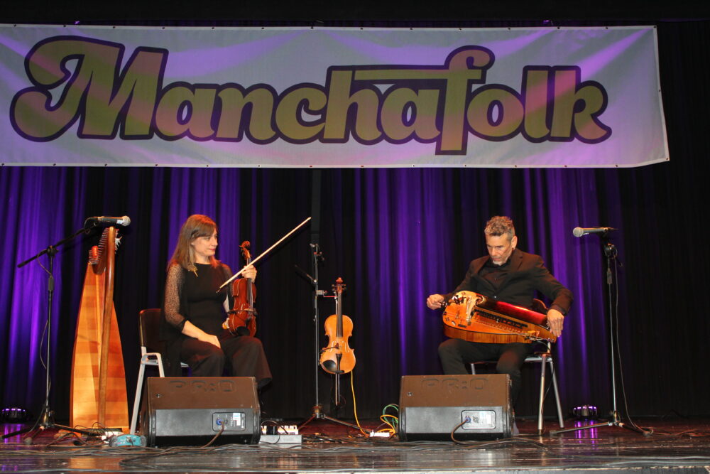 El concierto estuvo a cargo del dúo formado por Begoña Riobó (violín, harpa céltica y voz) y Anxo Pintos (violín y zanfona), quienes forman Pärbot Duet desde hace seis años. Ambos, además de músicos, son profesores en Vigo y visitaban por primera vez el Festival Manchafolk. “La música es nuestra vida”, confesaron, mostrando la pasión y compromiso que caracteriza su trayectoria.