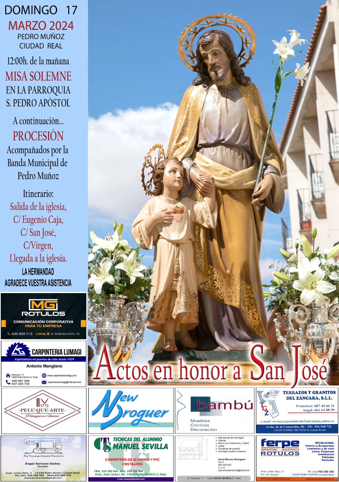 Este domingo, 17 de marzo, la Parroquia de San Pedro Apóstol de la localidad ciudadrealeña de Pedro Muñoz celebrará la tradicional misa solemne en honor al Día de San José, que se conmemora cada 19 de marzo.