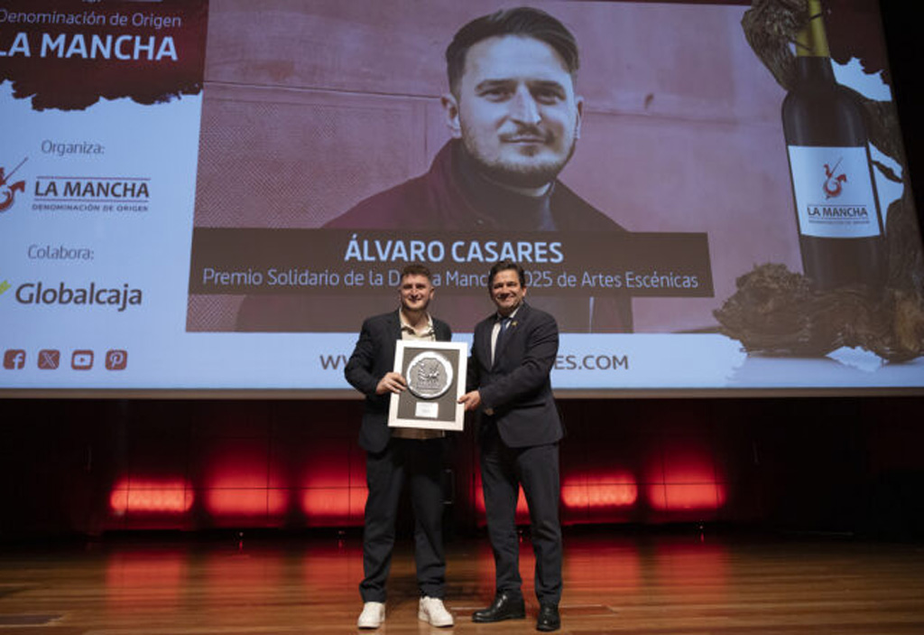 El humorista y actor Álvaro Casares, natural de Villamayor de Calatrava (Ciudad Real), fue reconocido en la categoría de Artes Escénicas. Durante su discurso, en tono distendido, señaló: “El humor manchego es sarcástico pero único, como los vinos de La Mancha. Por eso no voy a leer nada preparado, porque no sería cómico sino político”.