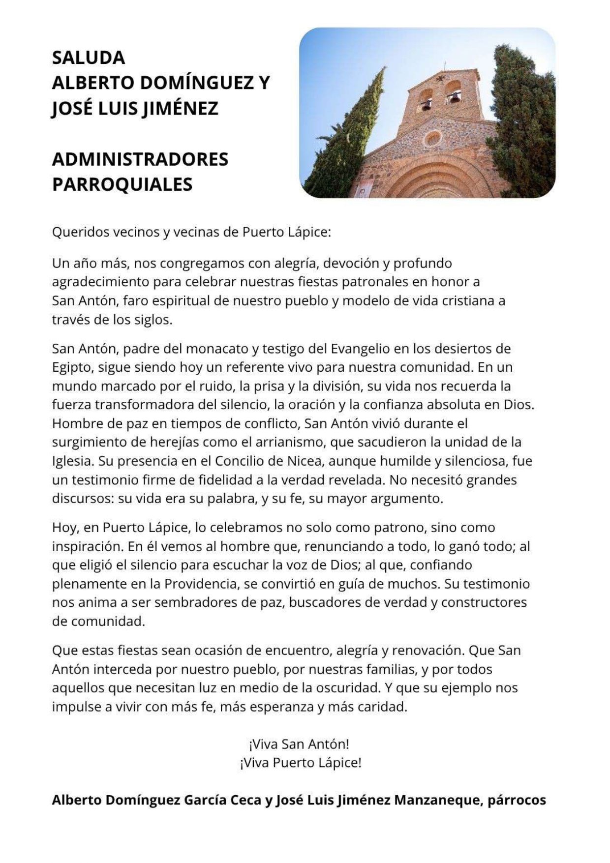 Durante estos días, el Ayuntamiento de Puerto Lápice ha preparado un completo programa de actividades lúdicas, culturales y festivas, pensado para todas las edades, con el objetivo de mantener viva la tradición y fomentar la participación de toda la comunidad.