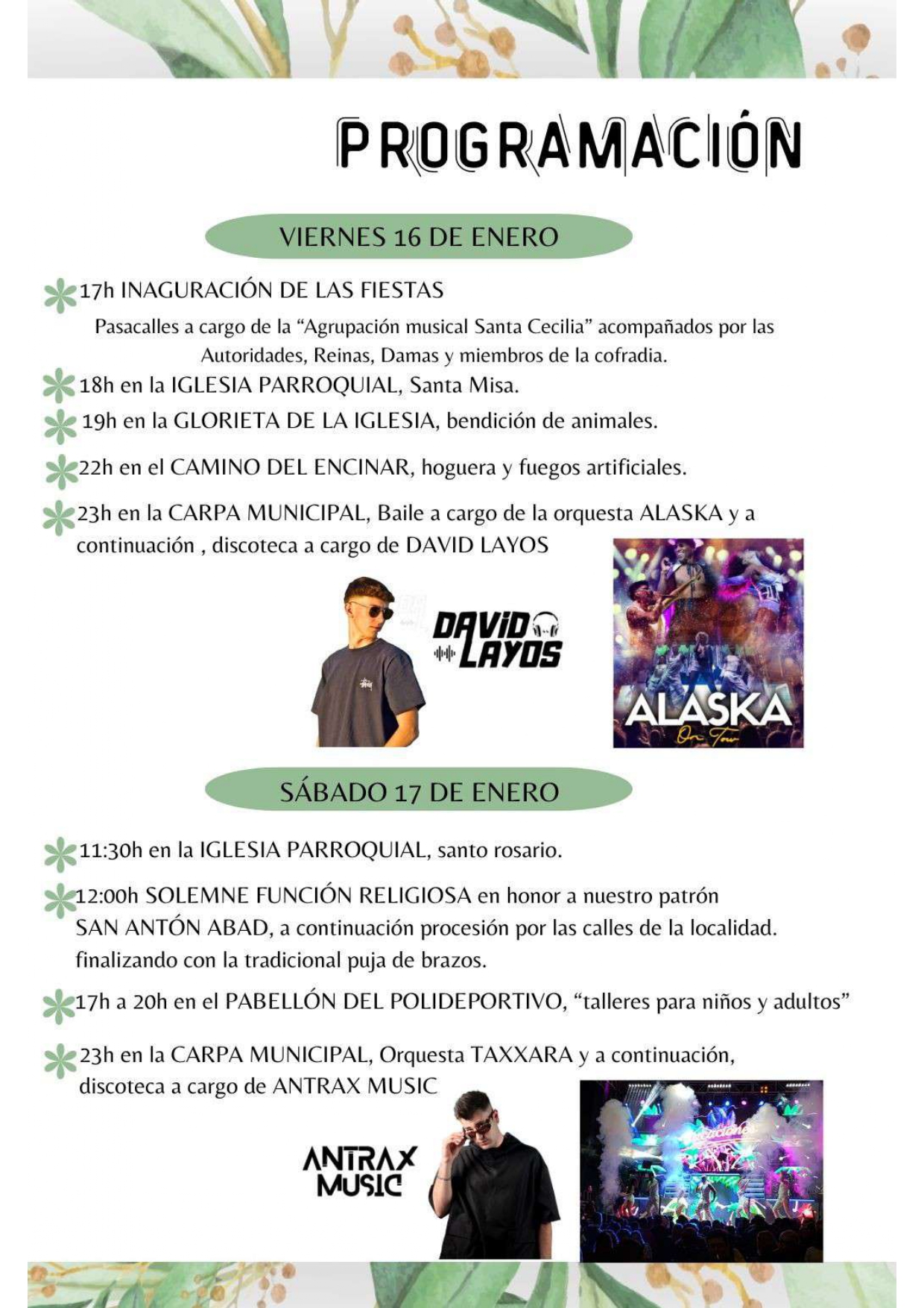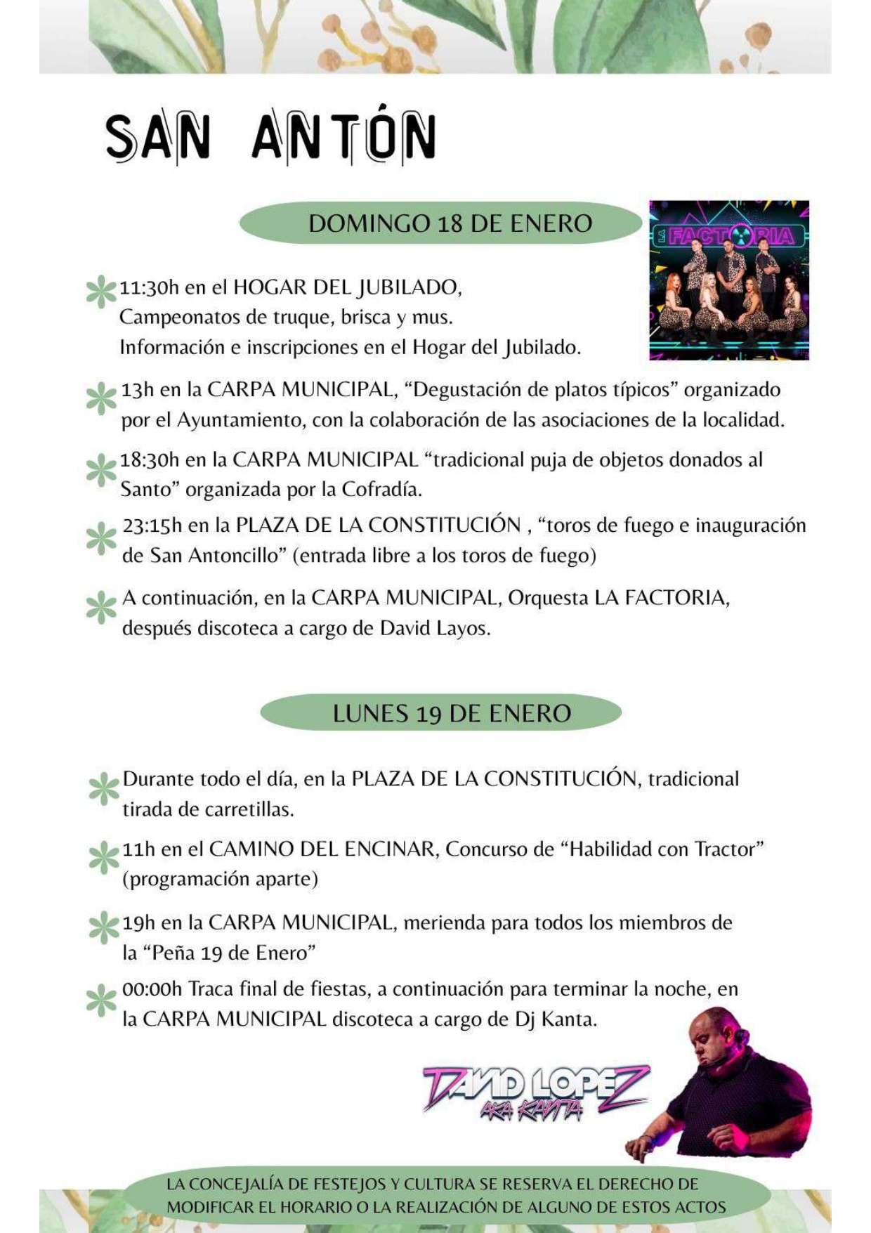 Los actos de San Antón incluyen actividades populares, música, juegos y propuestas para los más jóvenes, garantizando un ambiente de convivencia y celebración para todos los asistentes. Estos son: