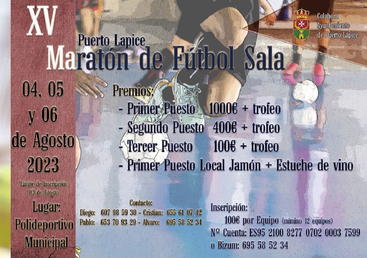 La localidad ciudadrealeña de Puerto Lápice llevará a cabo, el próximo fin de semana, la XV edición de su Maratón de fútbol sala, que contará de nuevo con importantes premios.