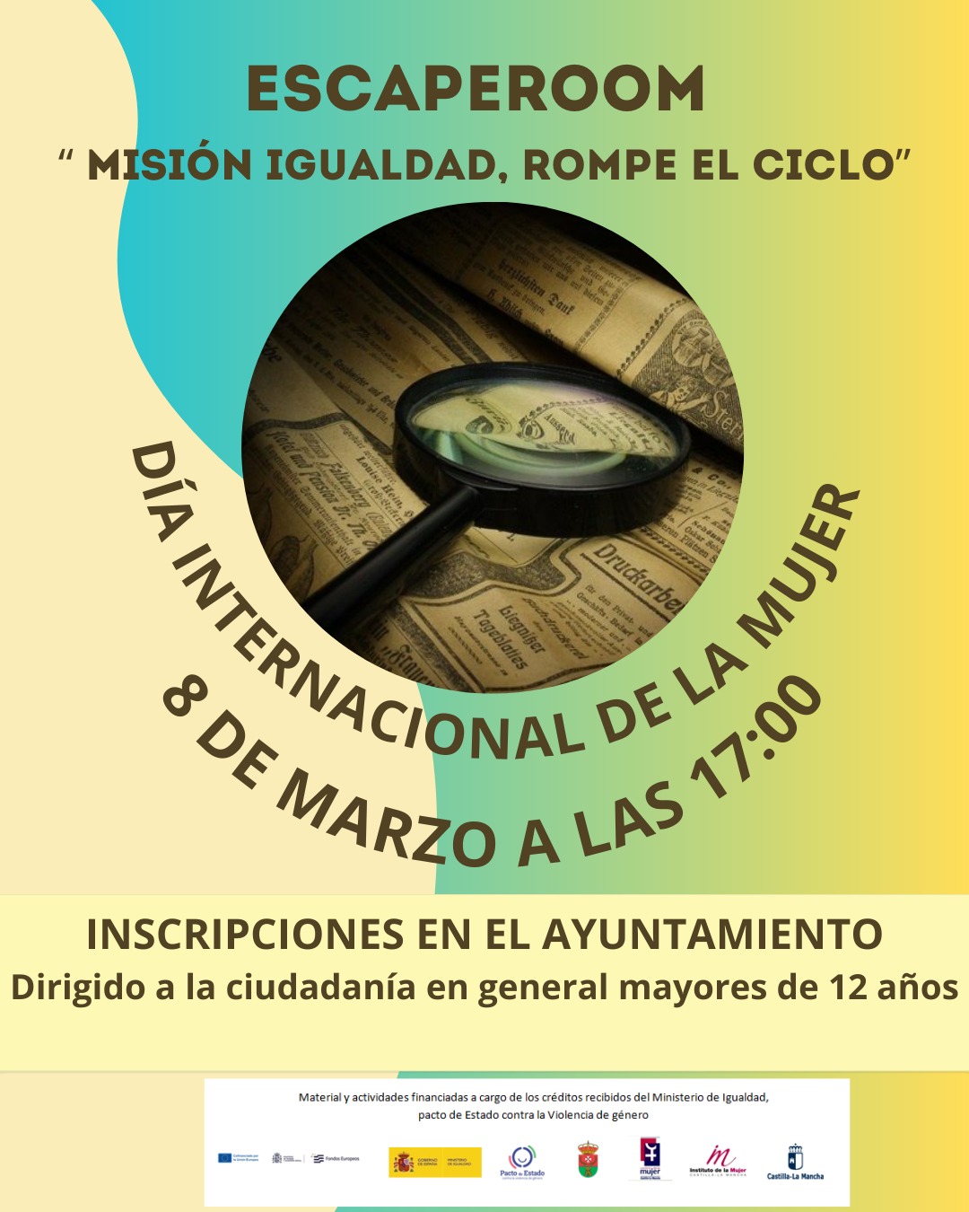 El Ayuntamiento de Puerto Lápice ha organizado una actividad especial con motivo del Día Internacional de la Mujer. Bajo el título “Misión Igualdad, rompe el ciclo”, la propuesta consistirá en un escape room dirigido a la ciudadanía en general, a partir de 12 años, que se celebrará el próximo 8 de marzo a las 17:00 horas.