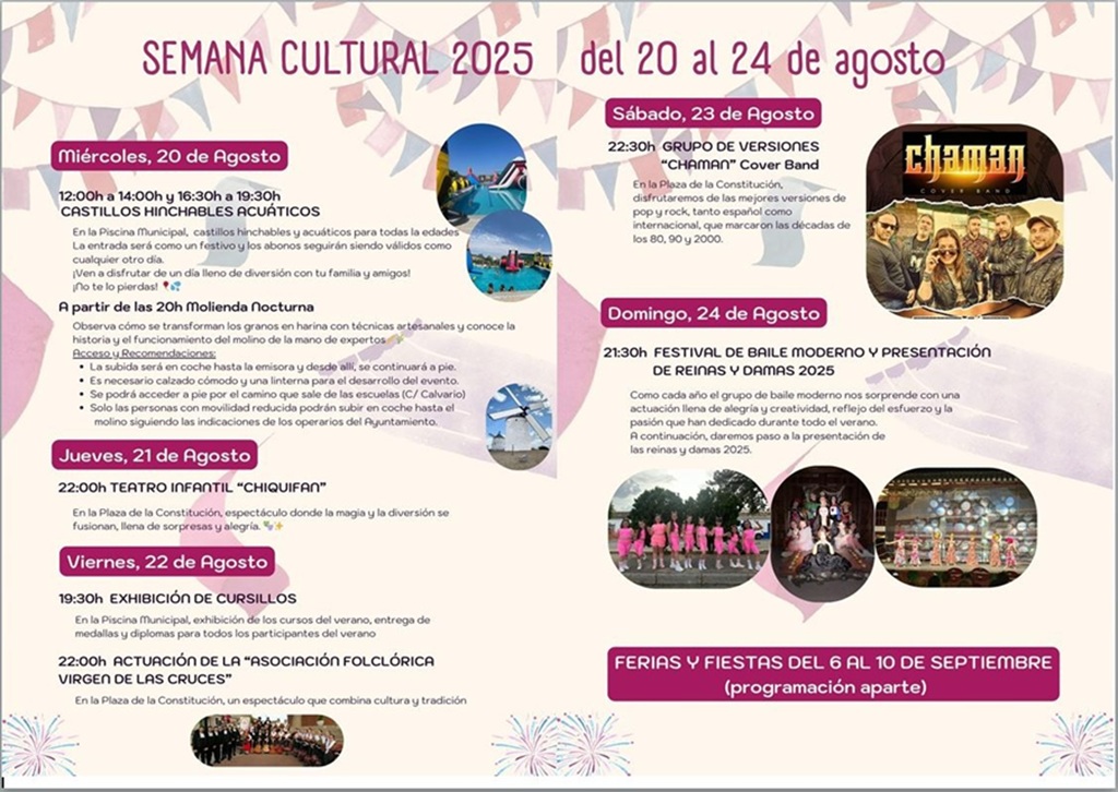 Ésta contará con actividades infantiles, para jóvenes y para mayores, además de tributos musicales que preludiarán los días grandes de Puerto Lápice en honor a su patrona, la Virgen del Buen Consejo.