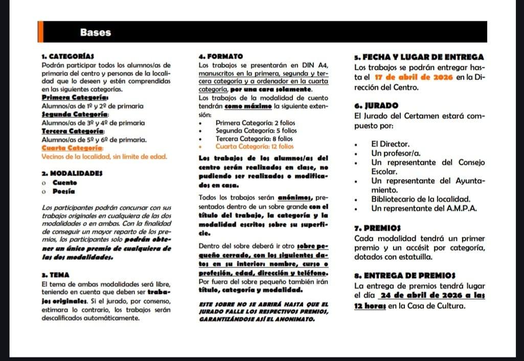 El jurado hará público su fallo el jueves 23 de abril, coincidiendo con la celebración del Día del Libro, en un acto que busca fomentar la lectura y la escritura entre los alumnos y la comunidad educativa.