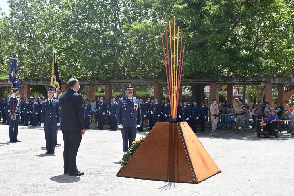 Uno de los momentos más solemnes fue el homenaje a los soldados caídos, en el que se depositó una corona de laurel en su memoria, seguido de una descarga de fusilería, símbolo de respeto y gratitud hacia quienes dieron su vida por España.