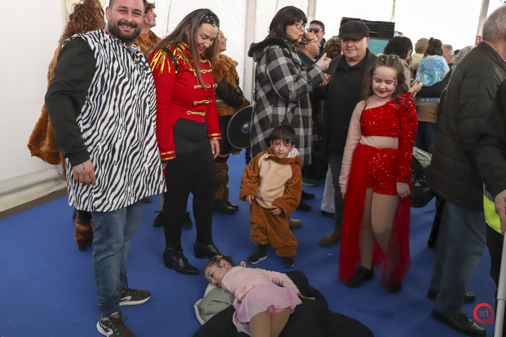 La Agrupación L@s Mezklaos, compuesta por matrimonios, amigos y sus hijos, ofreció un pregón marcado por la música y la participación del público. De los 30 componentes del grupo, 13 son niños con edades comprendidas entre los 2 y los 9 años.