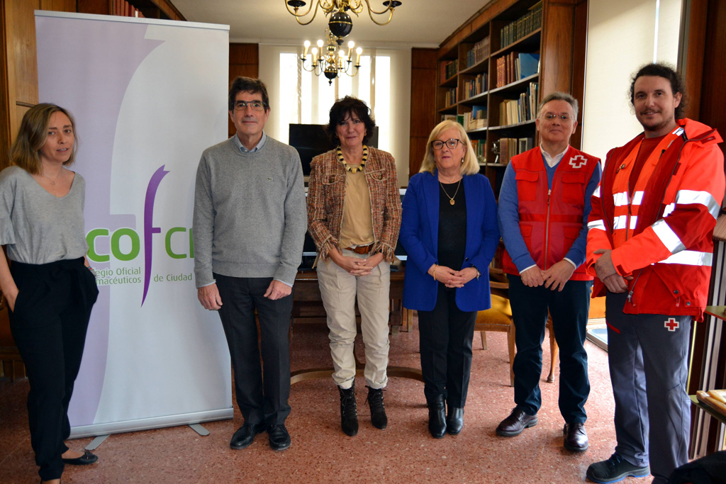 La presidenta provincial de Cruz Roja de Ciudad Real, Encarnación Luque, llegó acompañada de Agustín Real, coordinador provincial en Ciudad Real, siendo recibidos por la presidenta del Colegio, Marta Arteta; el secretario técnico del mismo José María Celis y la farmacéutica adjunta al Centro de Información del Medicamento (CIM), Blanca Suárez.