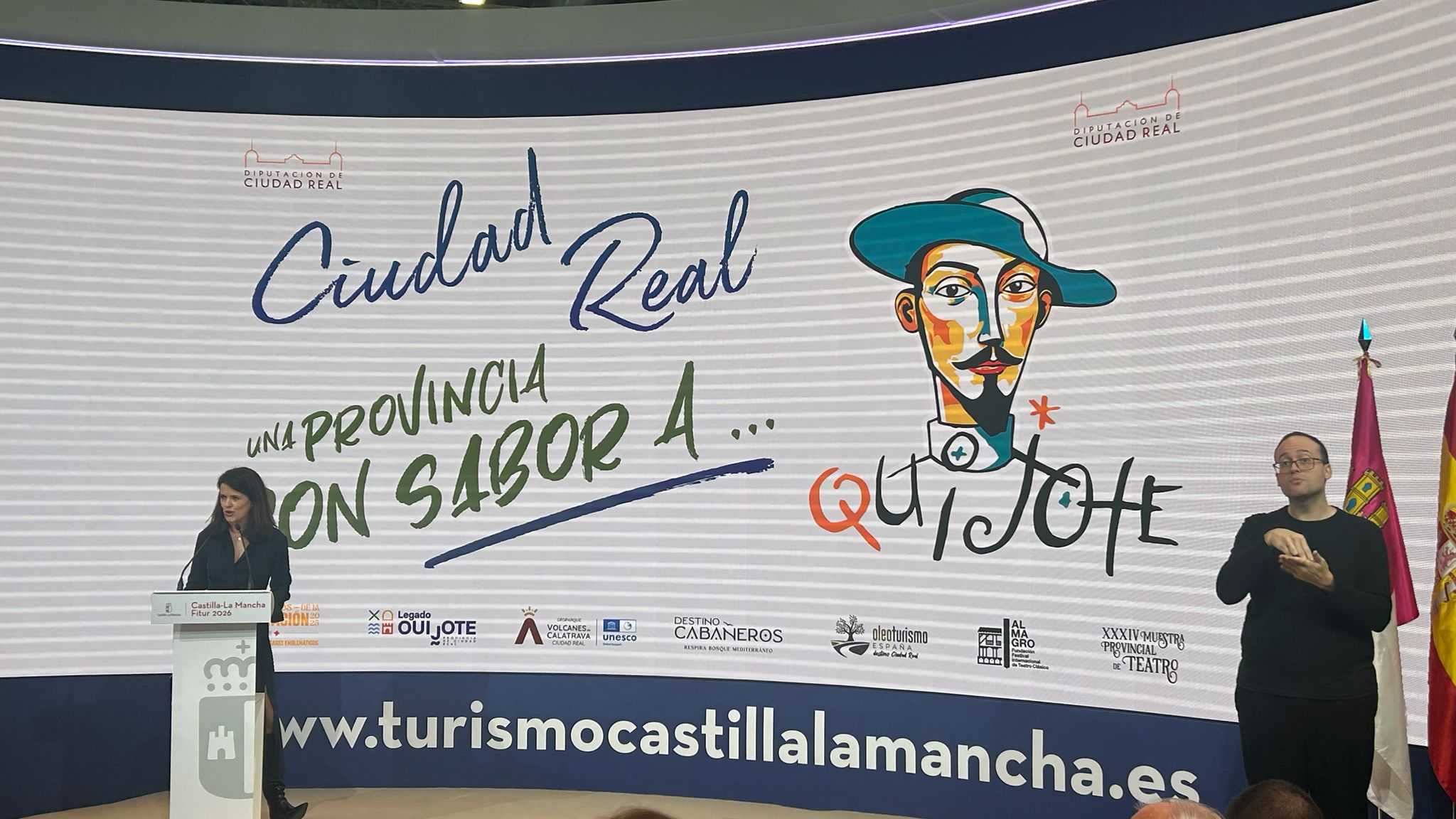Por su parte, la vicepresidenta primera de la Diputación y responsable de la gestión del área de impulso cultural y turístico a la provincia, María Jesús Pelayo, ha puesto el acento en el balance positivo con el que Ciudad Real llega a FITUR 2026, destacando que ha alcanzado cifras récord y ha liderado el turismo de interior en España durante el último año. Ha subrayado, además, el impacto de la estrategia digital, que ha superado los diez millones de visualizaciones en redes sociales, y ha defendido la importancia de contar con una marca turística sólida y reconocible como Sabor Quijote, que aporta identidad y diferenciación al territorio.
