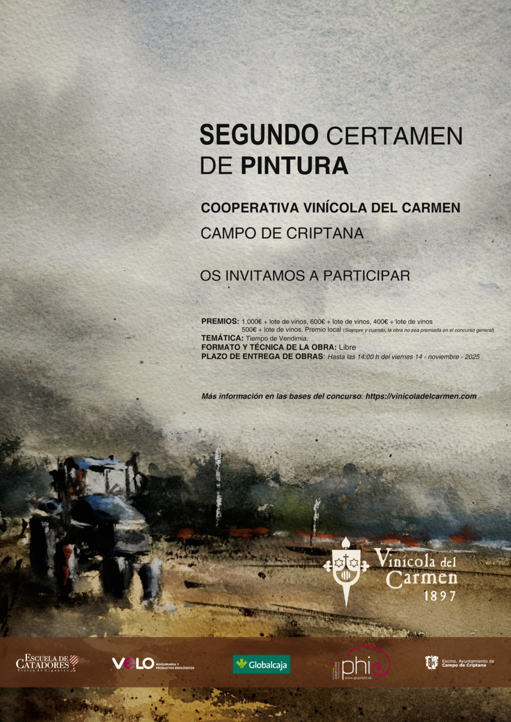 El certamen, que en su primera edición reunió 37 obras, vuelve con importantes novedades. La técnica y el formato serán libres y la temática girará en torno a “Tiempo de vendimia”. Las obras podrán presentarse hasta el 14 de noviembre en las oficinas de la cooperativa, y se expondrán en la sala José Díaz de la Casa de Cultura entre el 14 de noviembre y el 8 de diciembre.