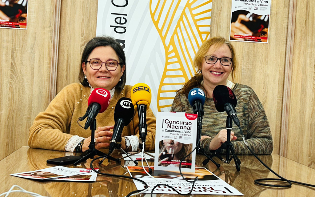 Julia Mercedes Leal, presidenta del Consejo Rector de Vinícola del Carmen, y Mª Victoria Jiménez, presidenta de la Asociación de Catadores de Castilla-La Mancha, han presentado esta nueva cita que promueve la cultura del vino ente la ciudadanía, con el propósito de aprender y disfrutar de este alimento.
