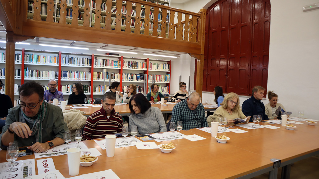 Una iniciativa que ha llenado una de las salas de la Biblioteca Municipal para disfrutar de ‘Vino y Letras’, un viaje literario a través de los vinos de la DO La Mancha y la lectura de algunas de las obras más emblemáticas de la literatura universal de la voz de los alumnos del aula de teatro.