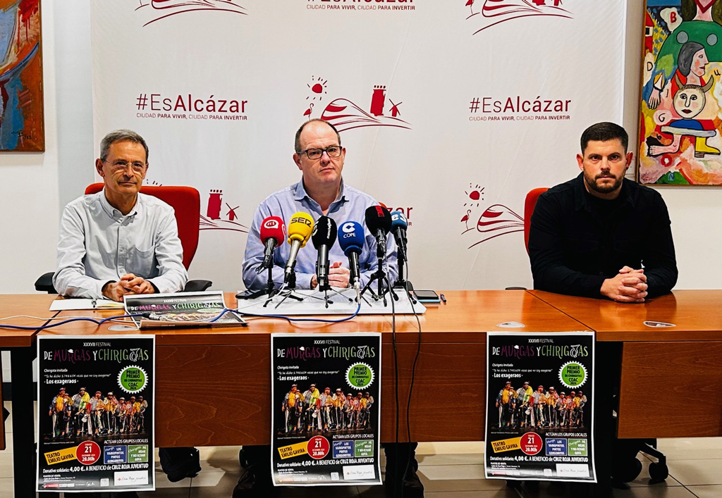El concejal de Festejos, Javier Castellanos, el representante de Cruz Roja Alcázar, Jesús Rodríguez, y Armando Meco, miembro de la chirigota alcazareña ‘Pa mear y no echar gota’ han sido los encargados de presentar este nuevo festival que contará como chirigota invitada, procedente de tierras gaditanas, con Los exageraos, una chirigota que el pasado año se alzaba con el primer premio en la categoría de Chirigotas del COAC 2024 de Cádiz.