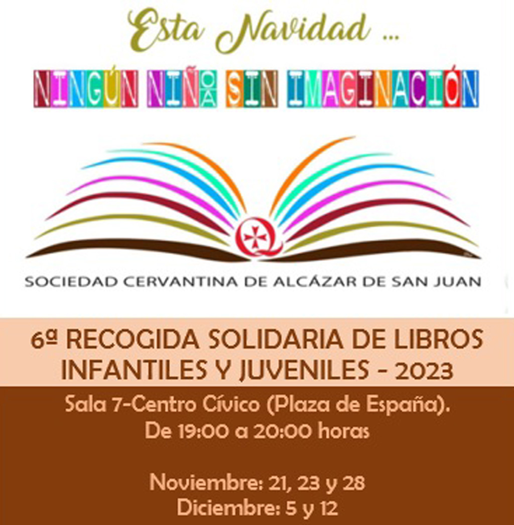 Con la Navidad a la vuelta de la esquina, la Sociedad Cervantina de Alcázar de San Juan vuelve a convocar a la solidaridad de la comunidad para la sexta edición de su campaña de recogida de libros infantiles y juveniles, bajo el lema «Ningún niño/a sin imaginación».